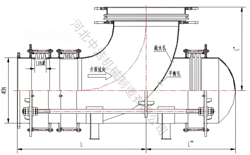 b、平衡內(nèi)壓推力: 曲管壓力平衡補償器不僅可以補償器管道位移還能平衡管道內(nèi)外壓力,波紋管內(nèi)部介質(zhì)流動產(chǎn)生壓力,內(nèi)外部壓力變化產(chǎn)生壓力差,而曲管壓力平衡補償器則可以實現(xiàn)平衡功能,保持管道系統(tǒng)穩(wěn)定運行。