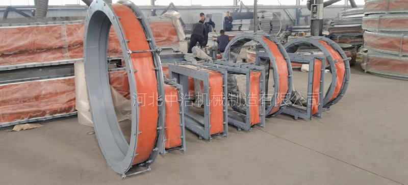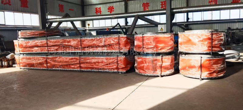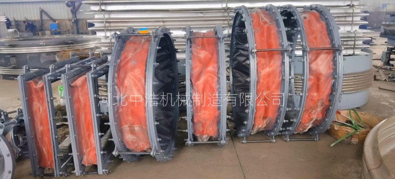 中浩機(jī)械在采用彈性密封元件和特殊密封材料,經(jīng)過(guò)合理的密封結(jié)構(gòu)設(shè)計(jì),從而使翻邊織物膨脹節(jié)達(dá)到有效的密封效果。由于非金屬膨脹節(jié)自身特性原因不可避免面對(duì)老化問(wèn)題,因而在制作時(shí)選用多層復(fù)合耐腐材料,對(duì)于長(zhǎng)期暴露惡劣工況條件需增加額外防護(hù)層耐腐材料。從而提高翻邊織物膨脹節(jié)密封性能和抗腐能力。